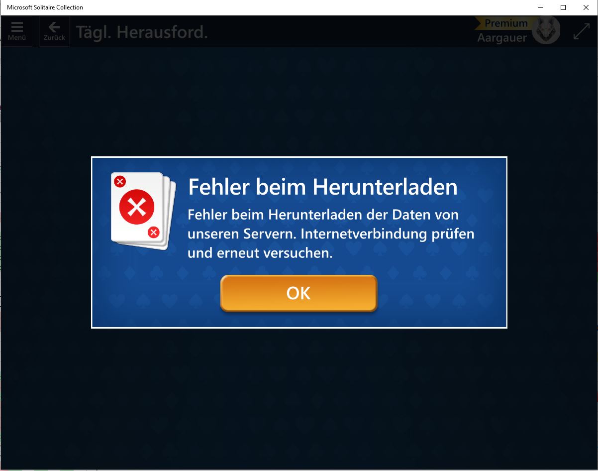 Auch die Benützung anderer IP's zum Bespiel über VPN, lässt nicht zu, dass ich die tägliche Herausforderung auf dem Notebook starten kann.